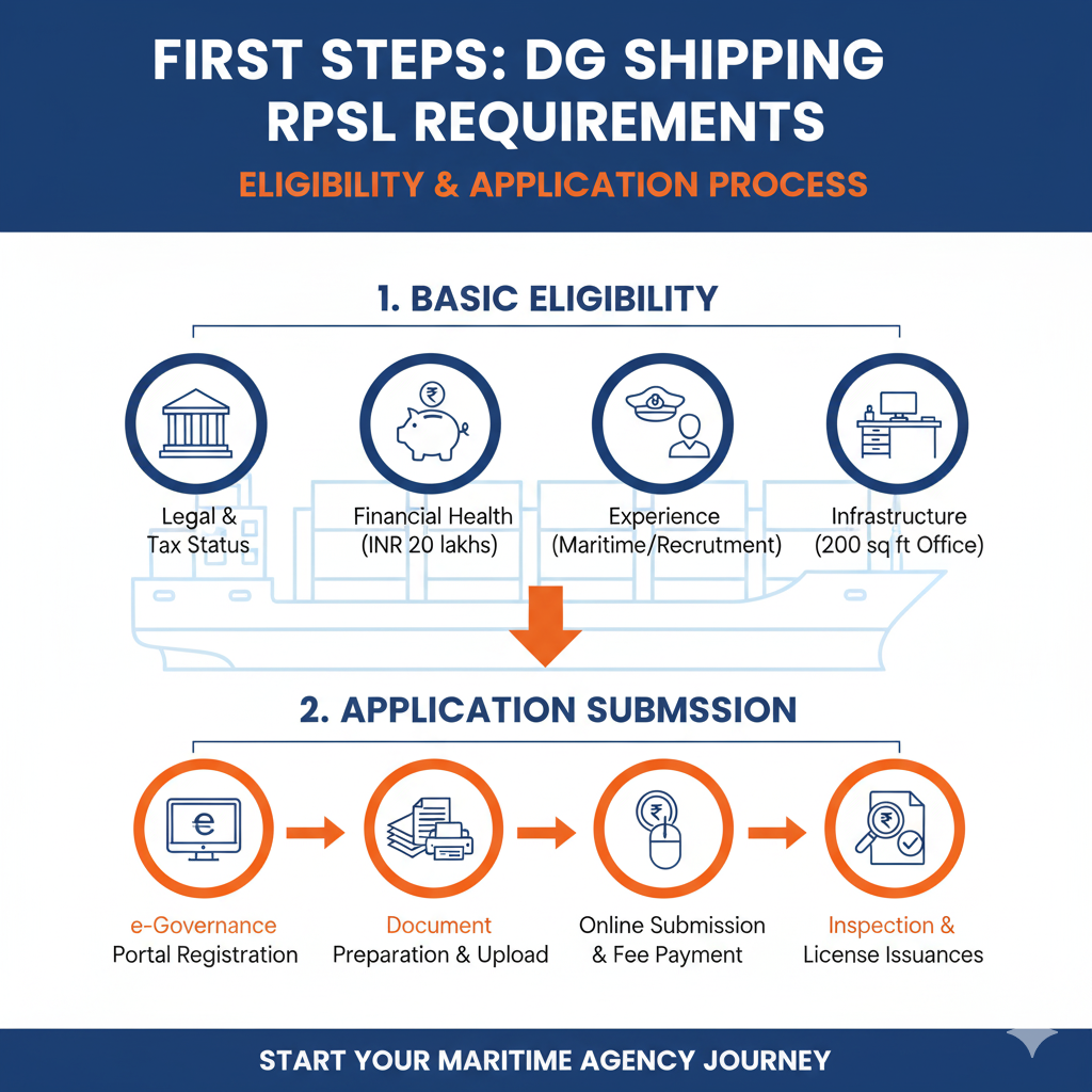 This section covers the foundational criteria and the application submission process. Meeting the DG Shipping RPSL requirements from the very beginning is a critical step for any maritime recruitment agency.