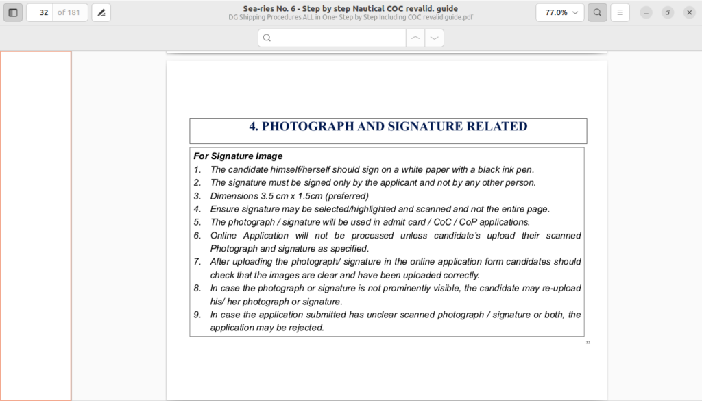 - Ensure all uploaded documents, photos, and signatures meet DG Shipping’s quality and format standards to avoid rejection.