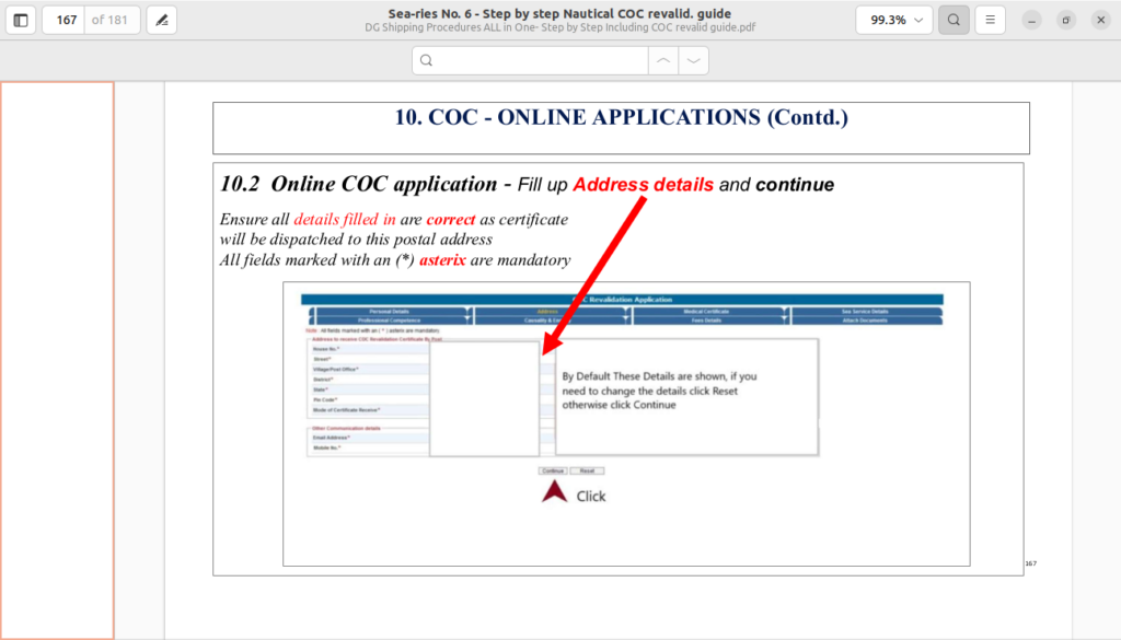 Navigate to the “Certificate of Competency (COC) and Revalidation” section and select the application for revalidation. Fill in necessary details carefully.