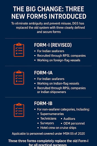 The new forms were introduced to stop confusion and harassment at Indian airports. Earlier, airlines and immigration officials were wrongly demanding the old Form-I from all travelers. The revised forms clearly define who needs which document and include security features to prevent forgery, ensuring smooth and uniform verification for seafarers and non-seafarers.