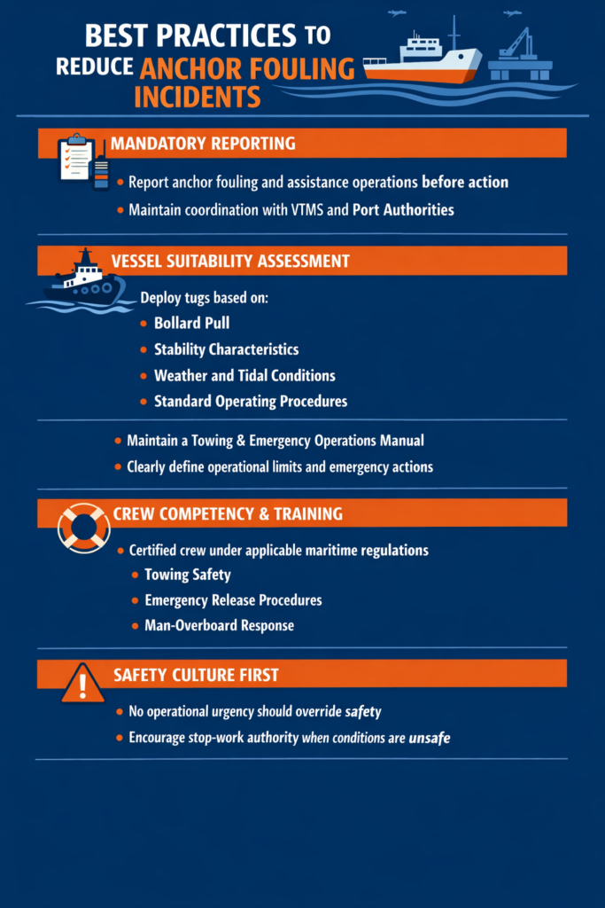 The capsizing of a tug during anchor clearance operations serves as a powerful reminder that marine safety depends on preparation, competence, and compliance. By learning from such incidents and implementing corrective measures, the maritime industry can prevent loss of life, protect the environment, and ensure smoother port operations.